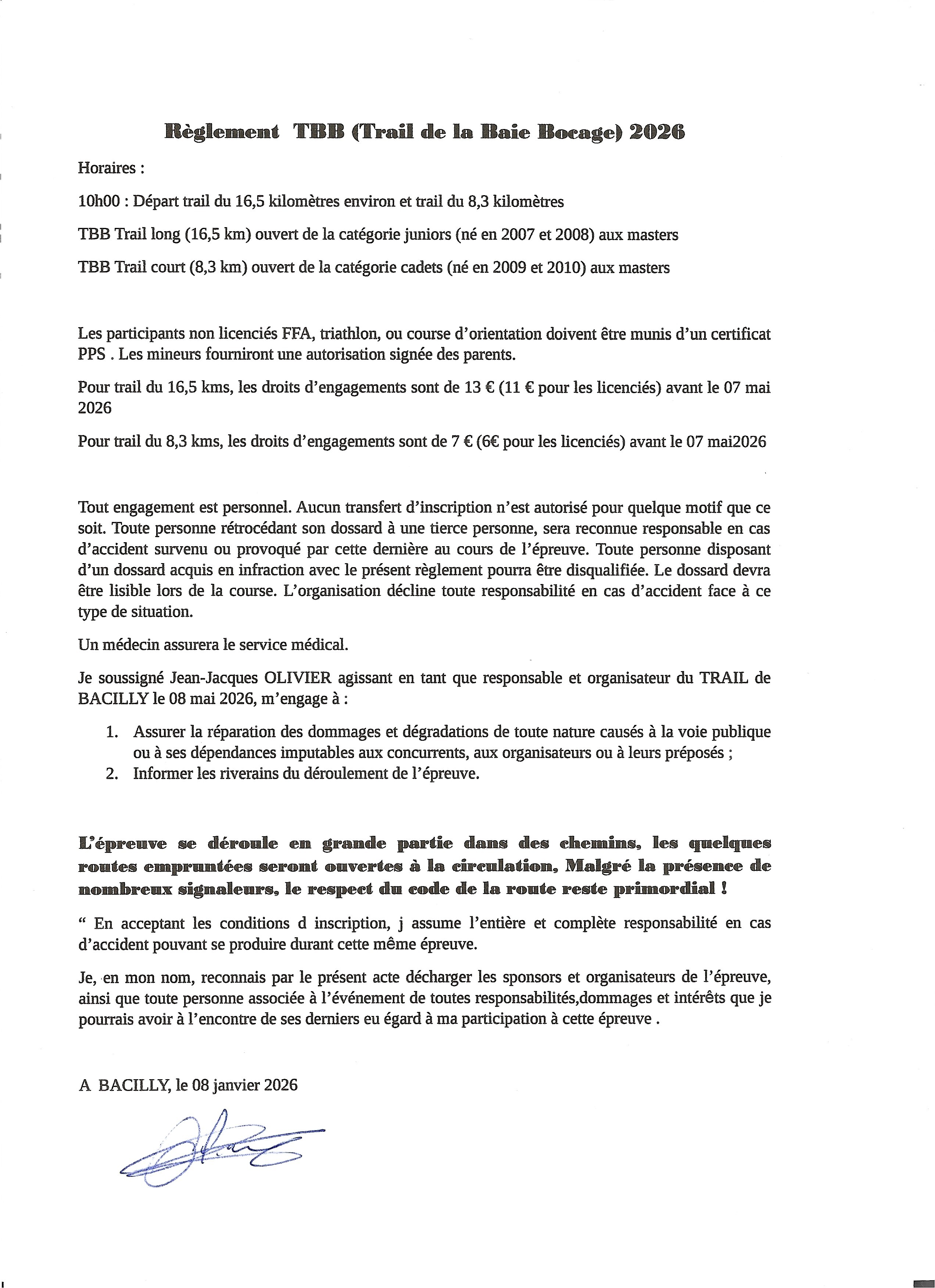 Tu pourras retirer ton dossard Ă la salle des fĂȘtes de Bacilly, le vendredi 8 mai 2026, Ă partir de 8h.