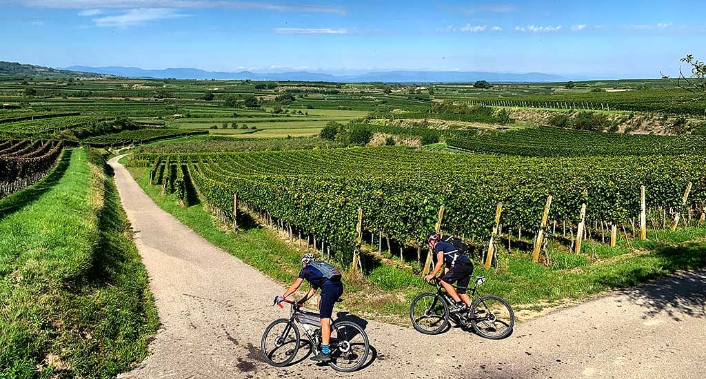Questo è il formato "re" 👑 per chi ama avere i polpacci in fiamme fin dal mattino 😅. Questo percorso ti porta dalle terrazze dei vigneti di Eichstetten am Kaiserstuhl per un viaggio epico verso Alsazia, sul lato francese 🇫🇷. Si alternano sezioni ultra-rotolanti lungo le rive del Reno e salite ripide 📈 tra i vigneti che metteranno alla prova il tuo grande cambio ⚙️. È un percorso "rompizzato" perfetto dove il recupero delle superfici piatte si paga con le ripide salite del massiccio vulcanico 🌋.